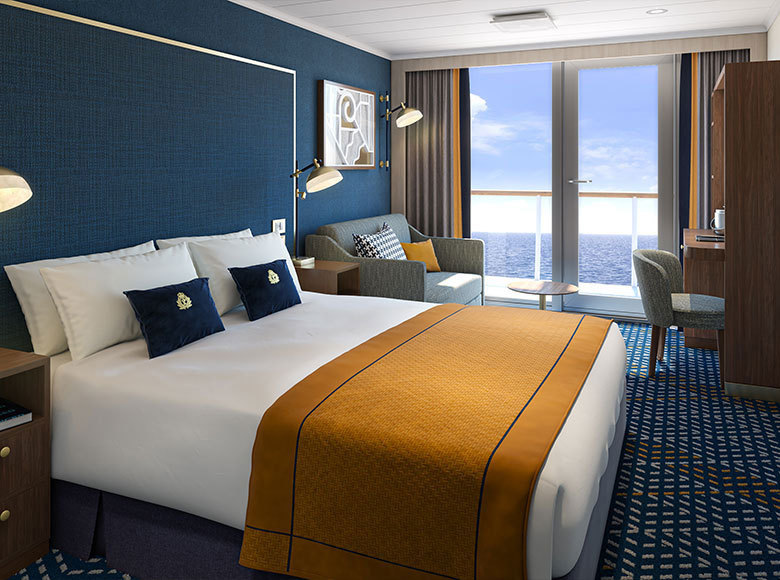 Enjoy prime sea views from your private, outdoor space in one of our Britannia Club Balcony staterooms. Your Britannia Club Balcony stateroom includes:Access to the intimate Britannia Club restaurant with a reserved table throughout your voyage.Private balcony with seating and sea views.Lounge area with seating.Sealy Cunarder bed configurable to king-size or two single beds. Bathroom with walk-in shower.Satellite TV with movie and music channels.Feature vanity and desk with hairdryer.UK, USA, European, and USB power sockets.Pillow concierge menu with a variety of types to choose from.Penhaligon's toiletries. Bathrobes and slippers.Speciality tea and coffee-making facilities.Complimentary spring water replenished throughout your voyage.A welcome bottle of sparkling wine.Complimentary room service menu.A dedicated steward to keep your stateroom in fine order day and night.Priority embarkation and disembarkation.