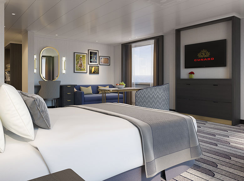 Offering special sea views, our oceanview staterooms provide a private enclave to watch the world go by. Your Britannia Oceanview stateroom includes:Choice of Early, Late, and Open Dining in the Britannia Restaurant.Lounge area with seating.Sealy Cunarder bed configurable to king-size or two single beds. Bathroom with a walk-in shower.Window with sea view.Satellite TV with movie and music channels.Feature vanity and desk with hairdryer.UK, USA, European, and USB power sockets.Penhaligon's toiletries. Bathrobes and slippers.Tea and coffee-making facilities.Welcome sparkling wine.Complimentary room service menu.A dedicated steward to keep your stateroom in fine order day and night.