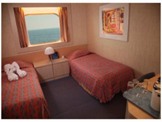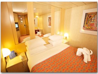 Sleeps up to 2 140 avg sf room 287 Staterooms - Two lower beds that convert to queen- satellite TV- air-conditioning- mini bar- safe- hairdryer- telephone