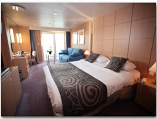 Mini Suites contain a living room area with a sofa and chair. Also included is a walk in wardrobe and the bathrooms have a shower and bath tub.With compliments: a bottle of sparkling wine in cabin upon arrival.