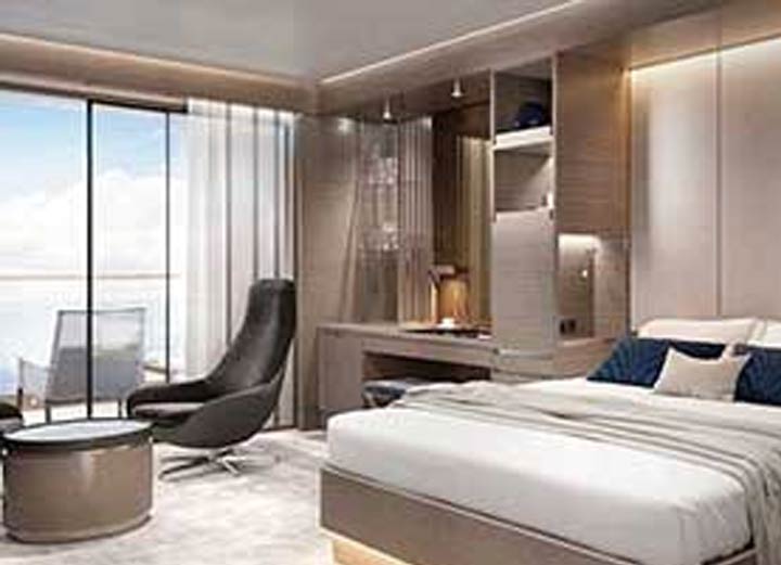 MAGNIFICENT OCEAN VIEWS - Private terrace overlooking the oceanSPACIOUS SUITE ACCOMMODATIONS - Luxury custom king bed sleep system, Double vanity bathroomsDEDICATED PERSONAL ASSISTANT - Dedicated Personal Assistant is your single onboard touch point to ensure a flawless, seamless journey from beginning to end, 24-hour in-suite dining, state of the art espresso machine, complimentary coffee and teas, and a fully stocked refrigeratorBED & BATH - Luxury custom king bed sleep system, Double vanity bathroom, Modern, sleek shower system, Luxury bed and bath linens created exclusively for The Ritz-Carlton Yacht CollectionSERVICES AND AMENITIES - 24-hour in-suite dining, Luxury bath amenities & individual robe and slippers, Complimentary WiFi, Choice of complimentary chilled bottle of Champagne or wine upon arrival, State of the art espresso machine, with complimentary coffee and teas, Digital flat screen smart television, In-suite safe, Vanity mirror, Hair dryer, Hypoallergenic pillows, upon request, 220v and 110v outlets, as well as USB charging capabilities